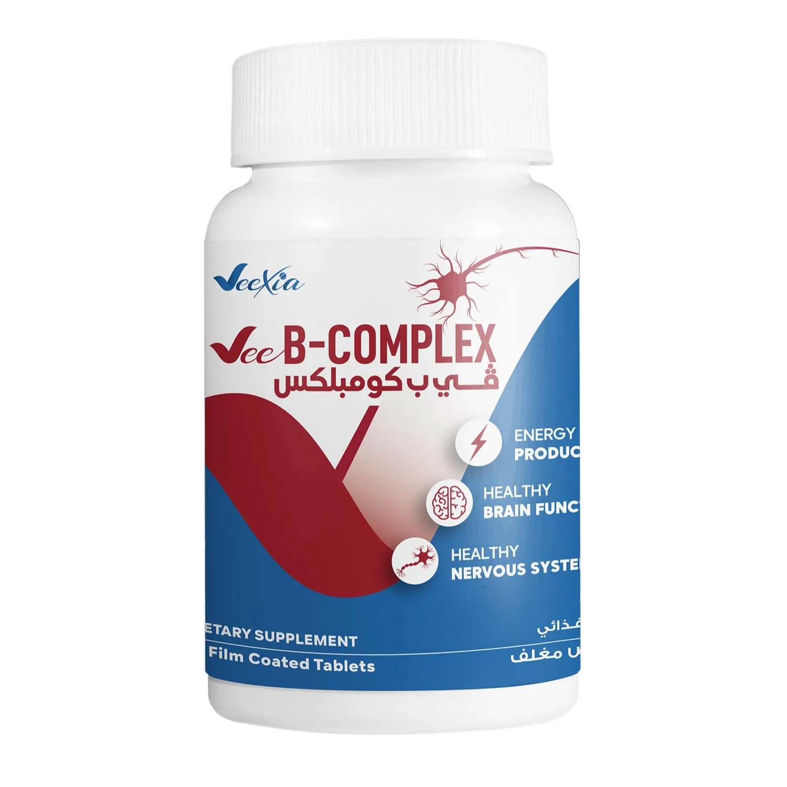 30 كبسولة | فيكسيا | ڤي بي كومبلكس مكمل غذائي لدعم الجهاز العصبي ووظيفة الدماغ مع فيتامين ج